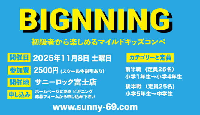 サニーロックではどんな方にもクライミング(ボルダリング)の楽しさを知っていただくために必要な環境を整えていきたいと思います